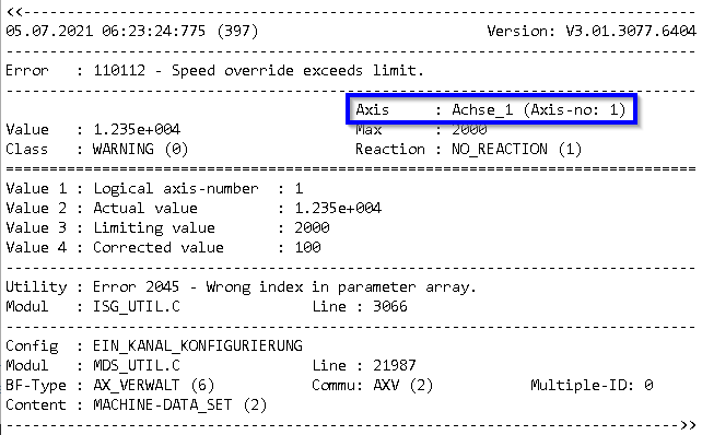 The output of error messages can be filtered globally or specifically by channel or axis